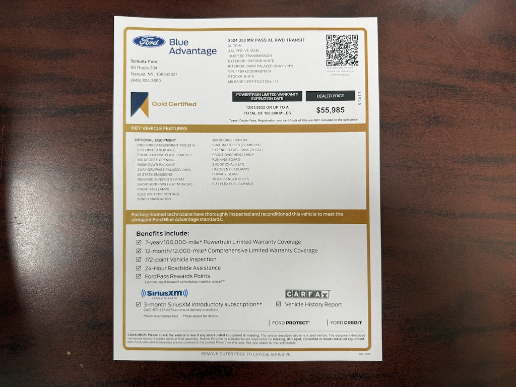 A great vehicle and a great value! This vehicle has achieved Certified Pre-Owned status, by passing Ford's rigorous certification process. With fewer than a thousand miles on the odometer, you'll be sure to appreciate this model's condition and value. All of the premium features expected of a Ford are offered, including: a tachometer, air conditioning, and remote keyless entry. It features an automatic transmission, rear-wheel drive, and a 3.5 liter 6 cylinder engine.